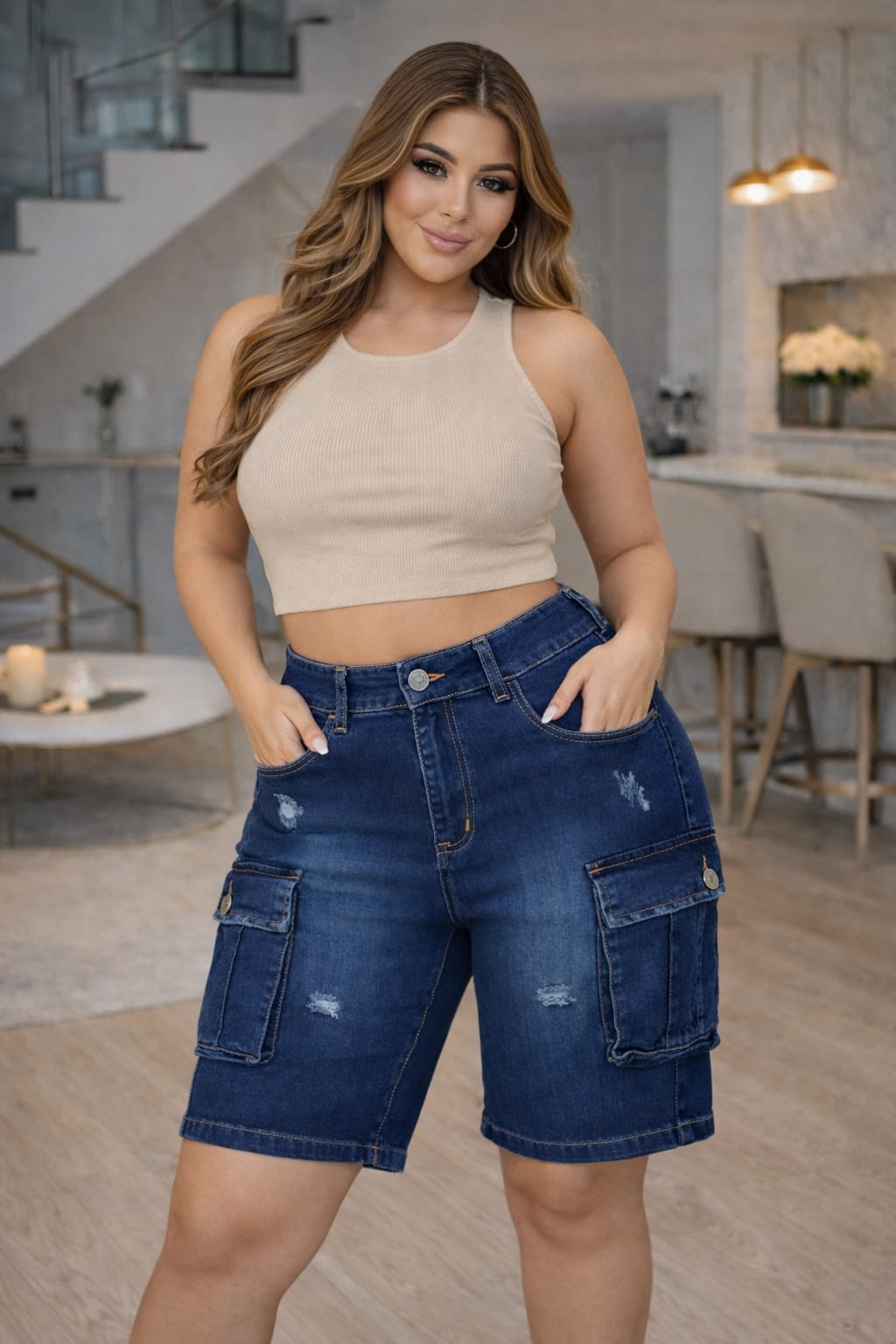 bermuda para dama bolsillos laterales tela strech