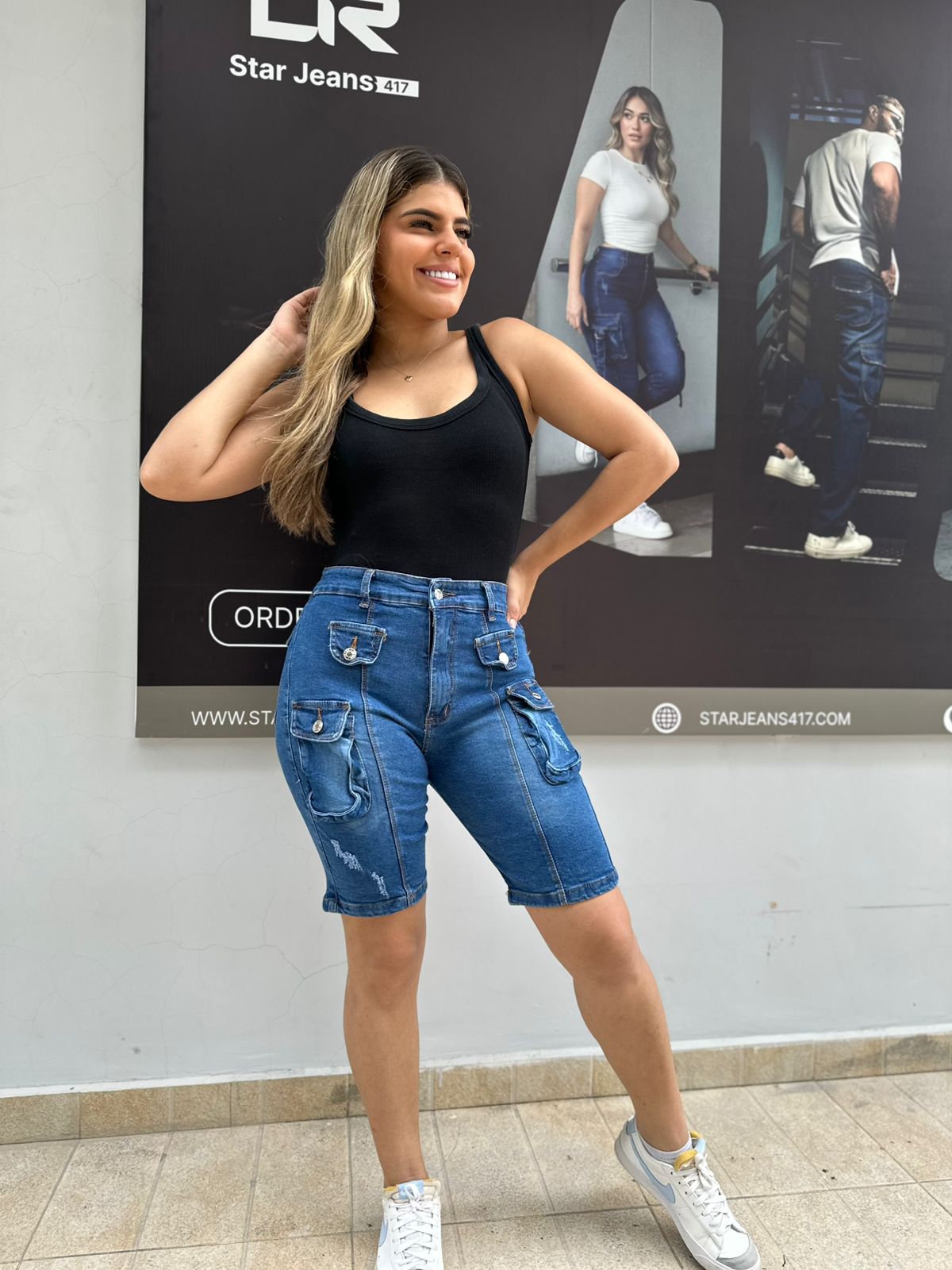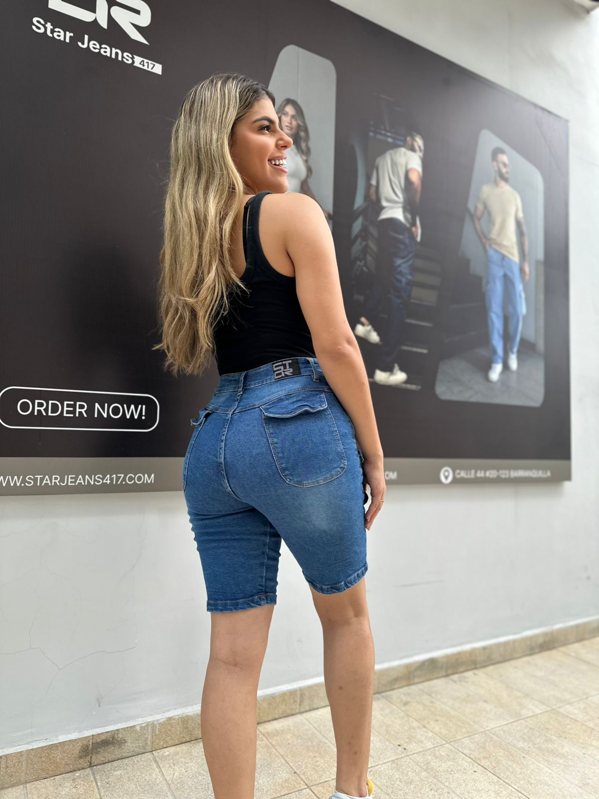 bermuda para dama tela strech tono oscuro 98%algodon 2%elastano