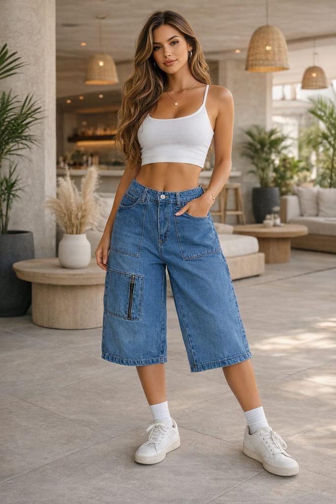 bermuda para dama tipo baggy, tela rígida 100% algodón