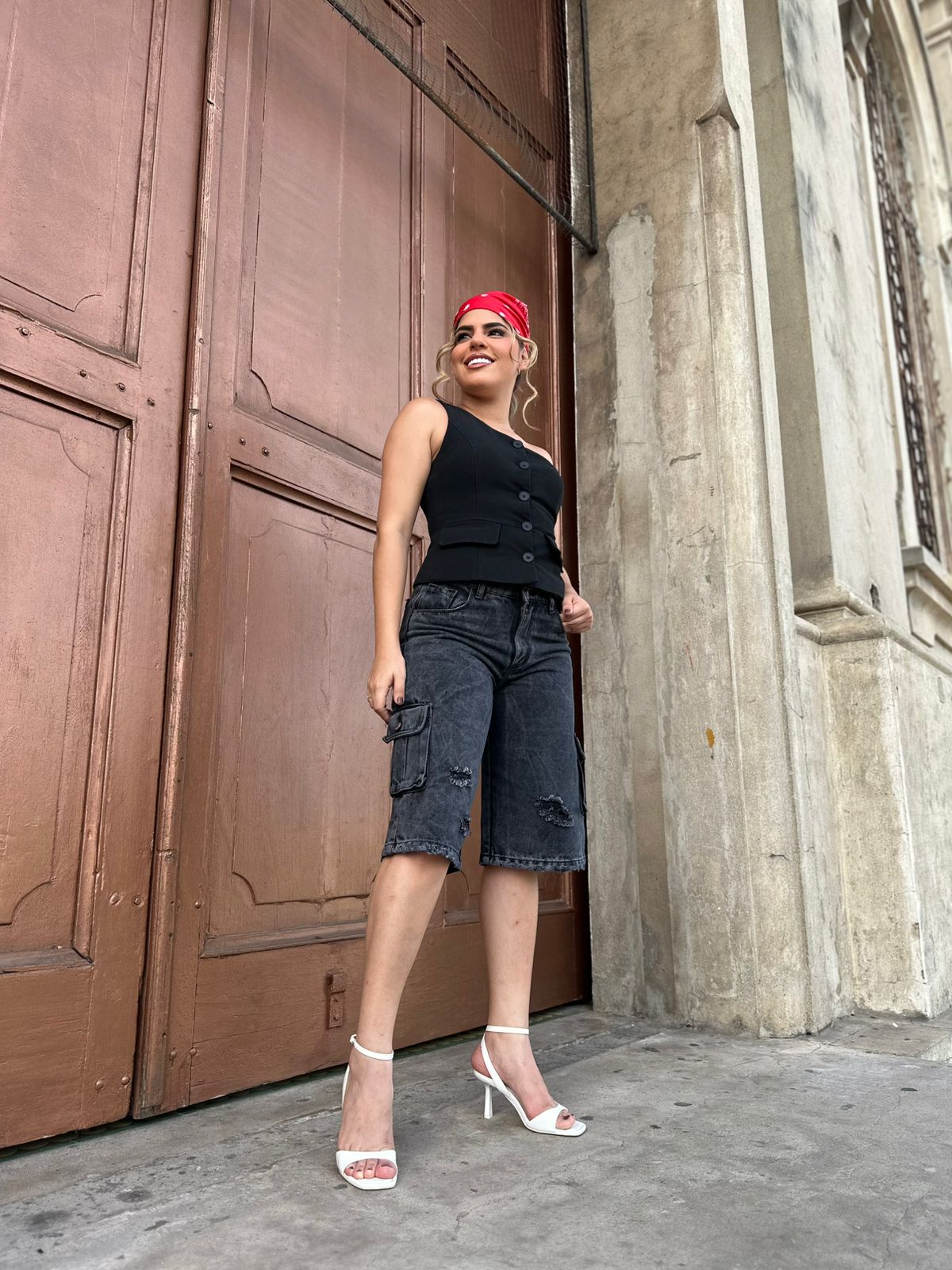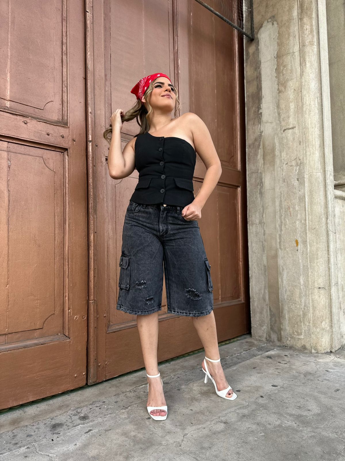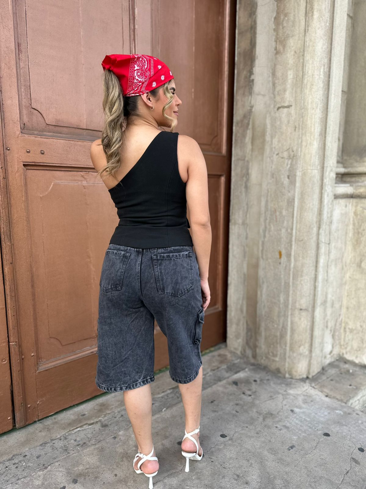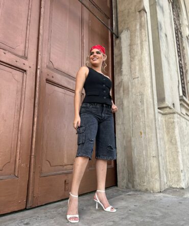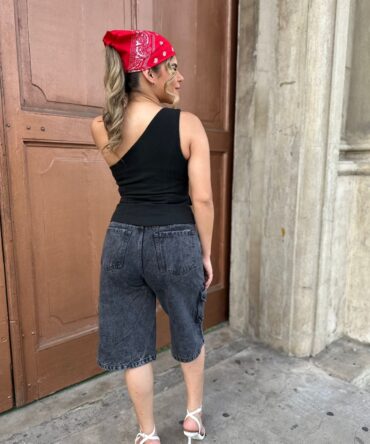 bermuda para dama tipo cargo tela rigida 100% algodon color humo