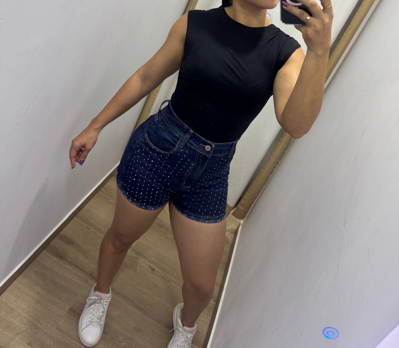 short para dama con brillos tela strech 98% algodón, 2%elastano