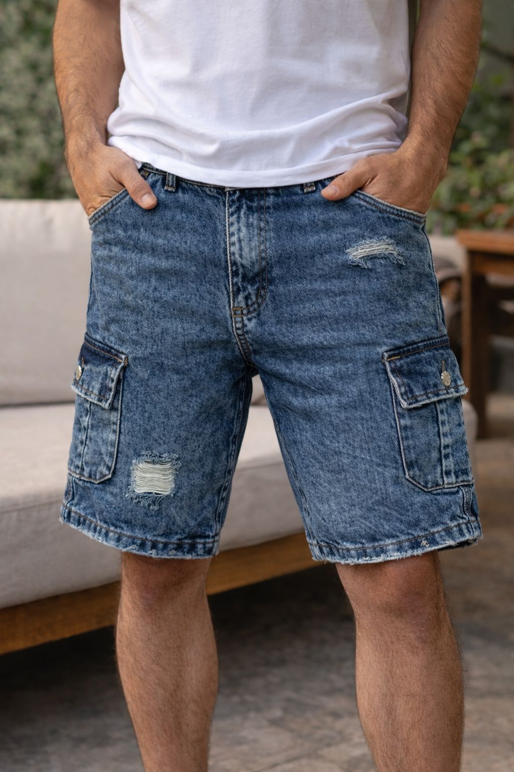 bermuda para caballero tipo cargo tela rígida 100% algodón