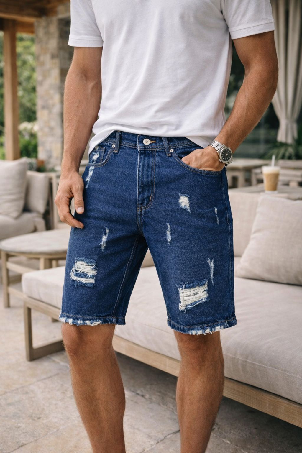 bermuda para caballero con efectos Destroyer tela rígida 100%algodon