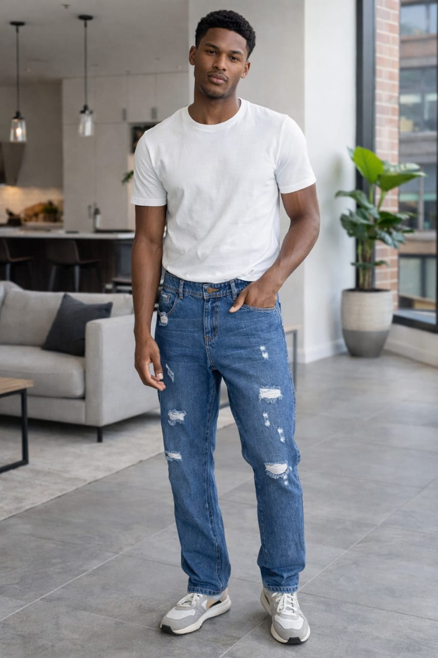 jeans para caballero Destroyer, 100%algodon tela rígida