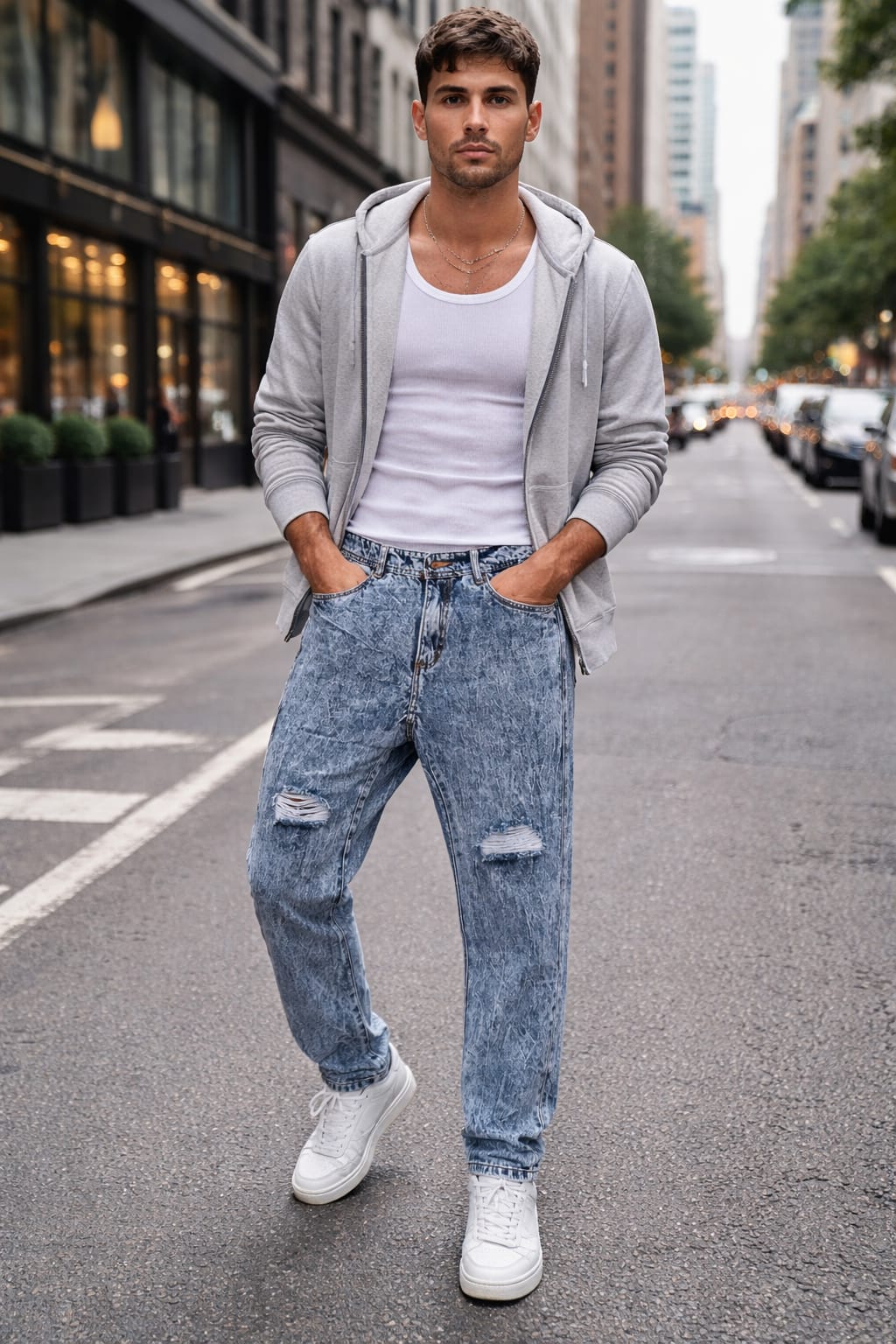 jeans para caballero tono sky, tela rígida 100% algodón