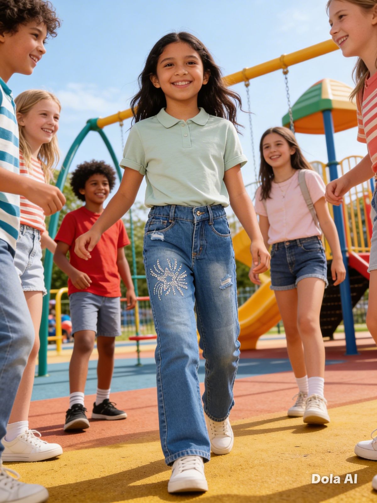 jeans para niña tela rigida, apliques decorativos 100% algodon