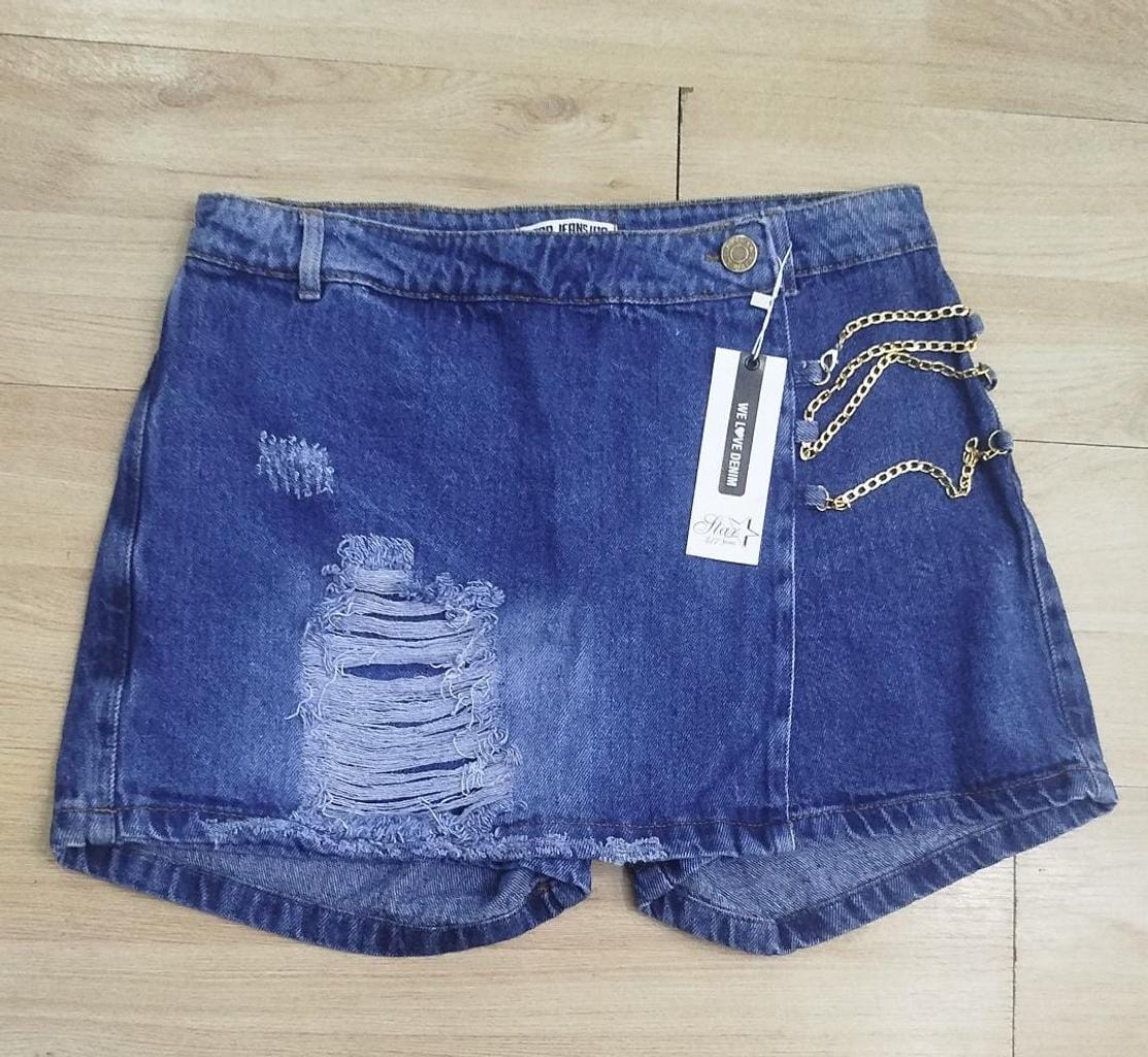 falda short tela rígida, 100 %algodón apliques dorados
